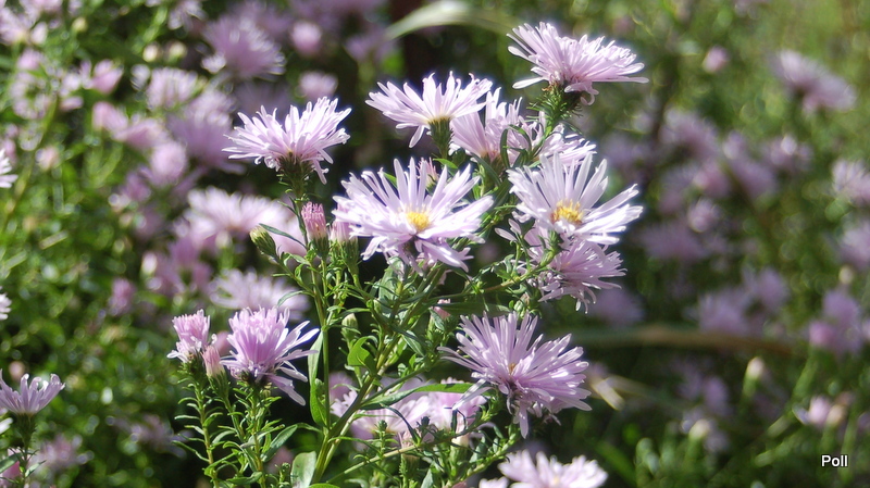 Gdy rozwija kwiaty, sprawia wrażenie krzaczka obsypanego jasnoróżowymi pomponikami. W miarę ich rozwijania, ukazuje się zółty środek, ale kwiaty pozostają na tyle masywne i ciężkie, że łodygi czasem potrafią się pokładac- zwłaszcza po deszczu. Podobno w ostatniej fazie kwitnienia staje się takim przeciętnym astrem, co widac na fotce w pierwszym poście.