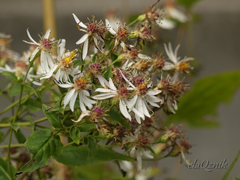 W połowie października aster rozkrzewiony zaczyna masowo zasuszać a następnie tracić płatki i wchodzi w moim ogrodzie w fazę przejściową... czyli przejściowo brzydnie
