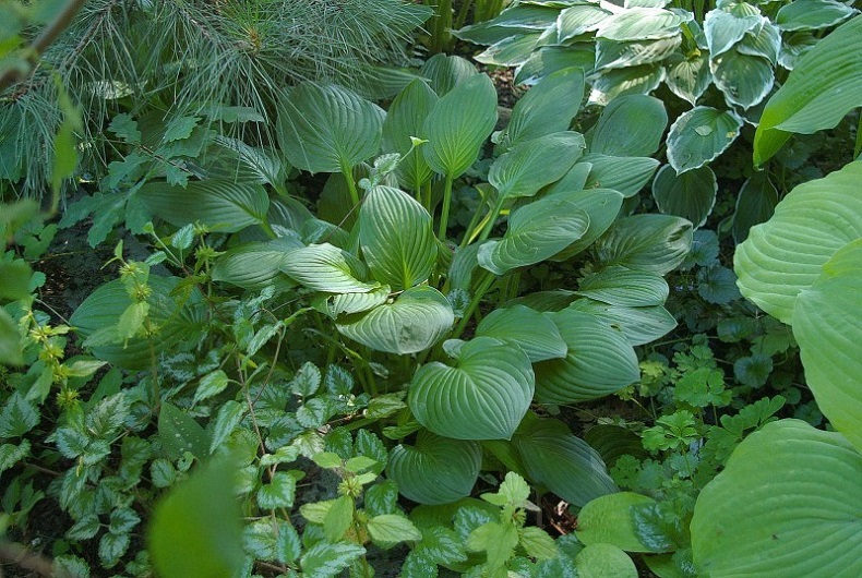 - hosta o oryginalnym kształcie i kolorze liści