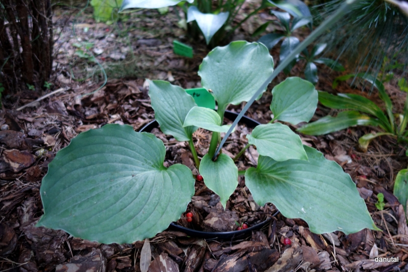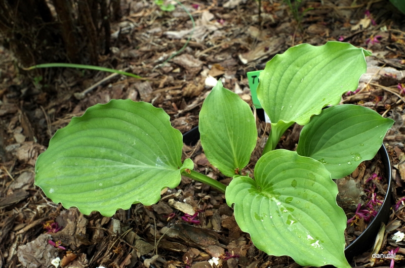 Rozmiar:M/L wysokość 45-55cm Liście: duże, sercowate; niebiesko-szaro-zielone z pofalowanym brzegiem i białym spodem Kwiaty: lawendowe w lipcu/sierpniu Zalecane stanowisko: najlepiej półcień, toleruje poranne słońce Uwagi: