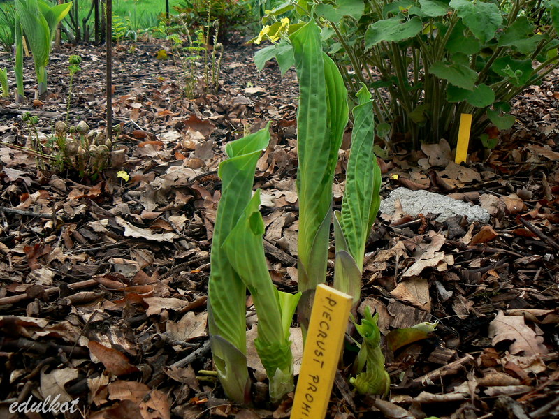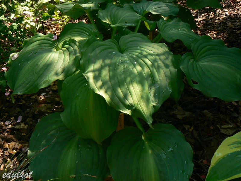 W tym roku, to 4 i 5 sezon moich Piecrust Promise. Mam je dwie, na róznych stanowiskach. Ta, która przedstawiona jest na zdjęciach powyżej, rosnie w dośc mocnym cieniu , drugi egzemplarz rośnie na Sławojkowie, teoretycznie pod cieniówką 75%, ale w rzeczywistości ten cień , to pozory. Stanowisko jest bardzo gorące i jednak wiele jaśniejsze. W tym miejscu, Piecrust Promise kwitnie obficie, ale zacierają się barwy liści - niemal nie ma kontrastu pomiędzy jaśniejszym, ale jednak zielonym centrum a ciemniejszym marginesem. Na ciemniejszym stanowisku ten kontrast jest wyraźny, ale hosta - choć starsza, utworzyła nieco mniejszą kepe i nie kwitnie. mamy wiec dylemat - czy chcemy, aby ładnie wyglądała, czy tez, aby obficie kwitła. na mnie, większe wrażenie robi ta, która ładniej się wybarwia, wiec na miejscu mocno cienistym i wilgotnym, dlatego też napisałam w pierwszym poście,że od półcienia. Wydaje mi się, że świetlisty , naturalny półcień od drzew liściastych jest najodpowiedniejszy.
