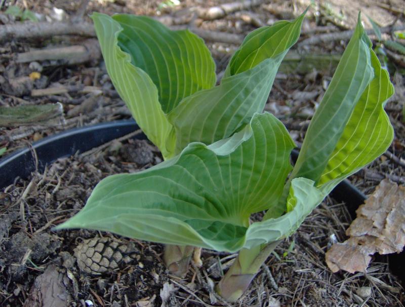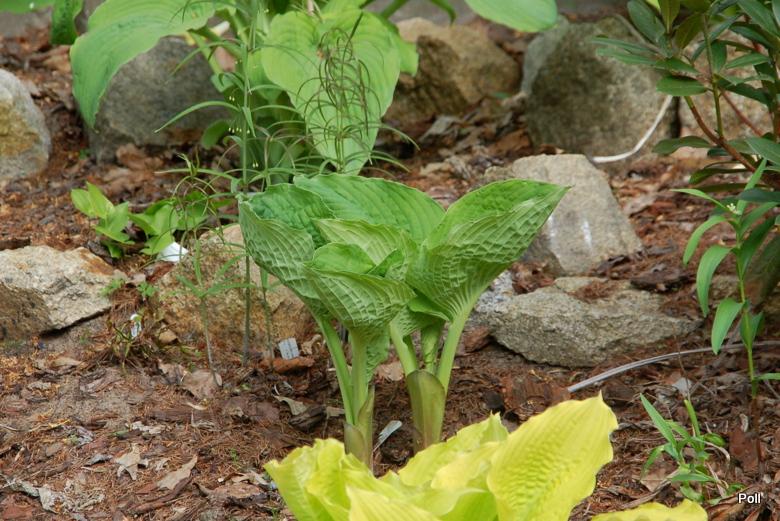 Hosta Smokey Bear dopiero rozwija liście z kłów. U mnie w ogrodzie rozpoczyna czwarty sezon i do tej pory trzy razy zmieniała miejsce. Obecnie rosnie razem z innymi hostami Olgi Petryszyn, na pólcienistym, często podlewanym stoku.
