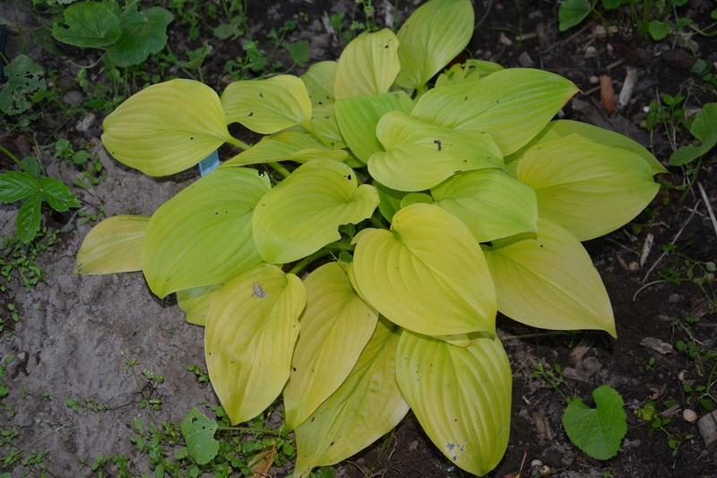 Hosta Tortilla Chip rośnie u mnie pod dereniem Satomi, słońca ma tam całkiem sporo. Latem liście robią się żółtawe, ale tak delikatnie ... i to mnie trochę zastanawia
