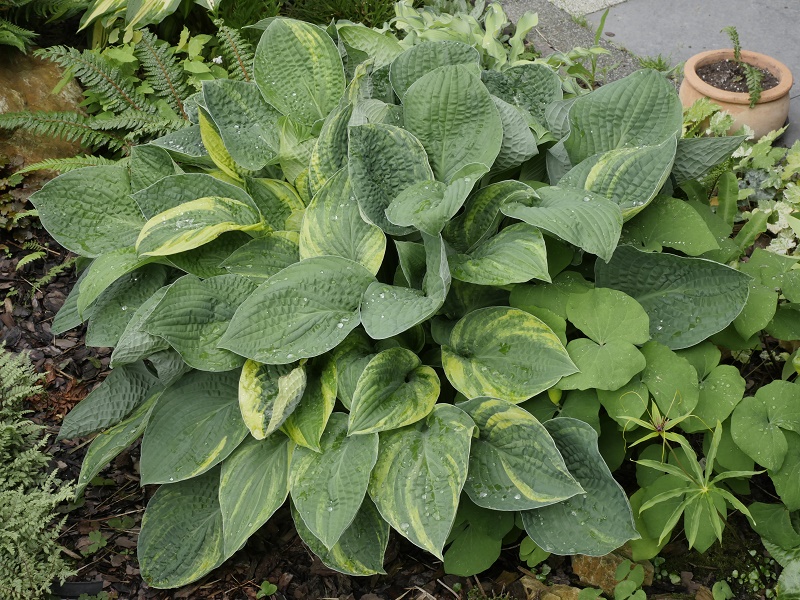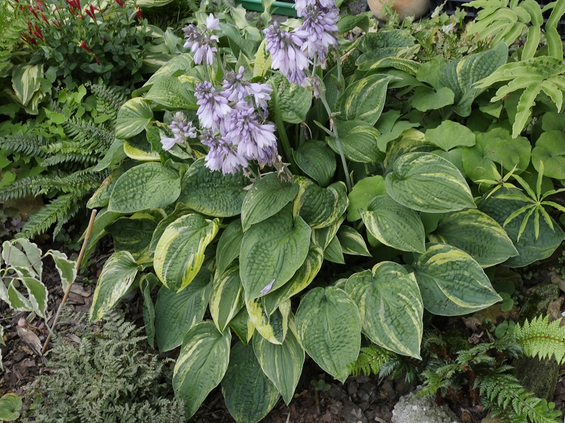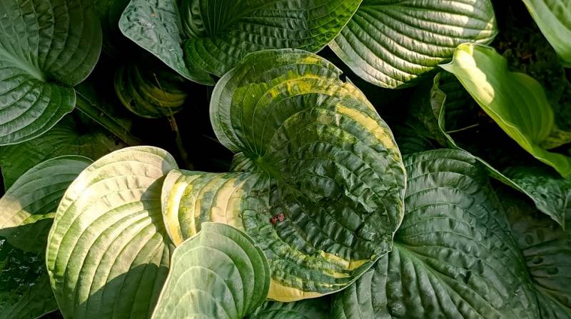 Późną jesienią moja 'Miss Poland' została uszczuplona... ale tak na chybił trafił, bo liście już zżółknięte były... : oddzielone 3 części wyszły wiosną w formie zielonej z mazajem w zaniku (pojawił się dosłownie na 1 liściu) oraz w formie żółtoobrzeżonej... i tak mi się zdaje, że w sprzyjającej porze muszę dokonać kolejnej redukcji kępy, bo liście jednobarwne zaczynają w niej dominować nad prawidłowo wybarwionymi a takie odejścia od wzorca to prosta droga do utraty odmianowej hosty