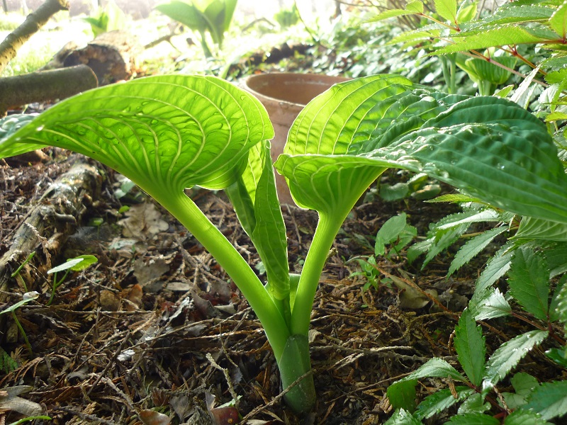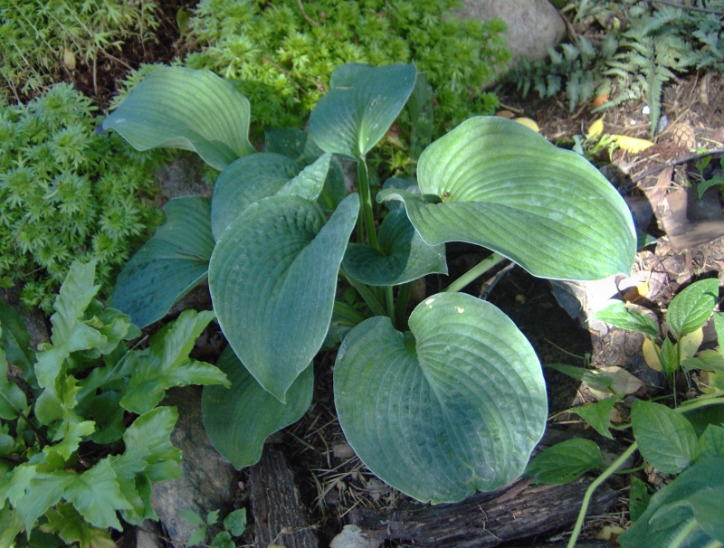 Krzyżówka host Puckered Giant x Woodland Blue (Van Vade, 2007r.)