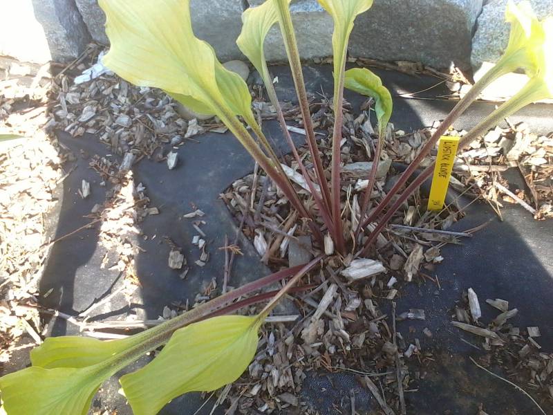 Hybryda host 'Granny's Rouge' × 'Designer Genes' (D. Van Eechaute 2012r)