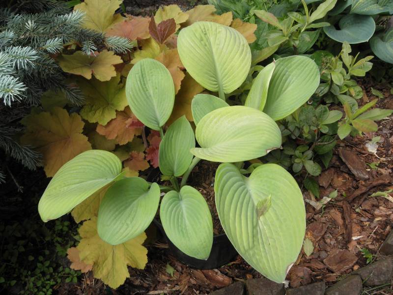 Fajna, rozświetlająca ciemniejsze zakątki hosta. O tej porze roku wygląda idealnie, nietknięta przez ślimaki ani inne plagi. Ma też tę zaletę, że nie zielenieje z czasem.