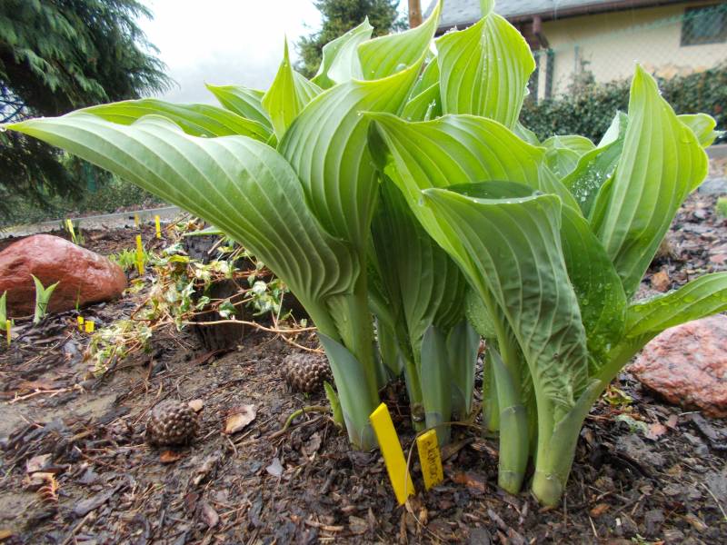 Hosta Komodo Dragon dostała jesienią mocno wilgotne, półcieniste stanowisko i widać, ze jej się spodobało na nowym miejscu. Póki co, nadal sie rozwija i rosnie.