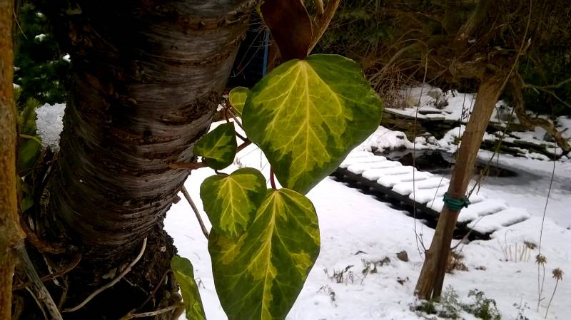 Młodziutki, kupiony wiosną 2016, na zimę owinęłam go włókniną, ale stracił najdłuższe pędy, jak prawie wszystkie moje bluszcze, co dziwne stało się to dopiero wiosną i nie wydaje mi się, aby wystąpiły wtedy jakieś znaczące wahnięcia temperatury.