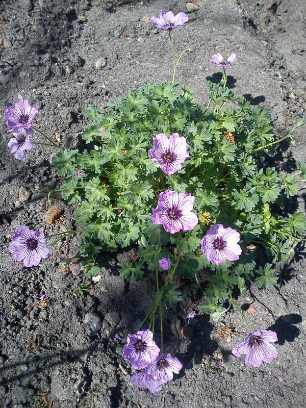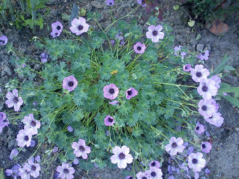 Bodziszek popielaty 'Ballerina' zaczyna u mnie trzeci sezon. Stanowisko słoneczne. Rozrasta się powoli w regularną kulistą kępę.