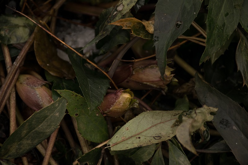 Helleborus niger z podziału od koleżanki w ubiegłym roku zakwitł na początku lutego, w grudniu przysypałam jego pąki kwiatowe liśćmi, ponieważ rok wcześniej nie osłonięte zmarzły.