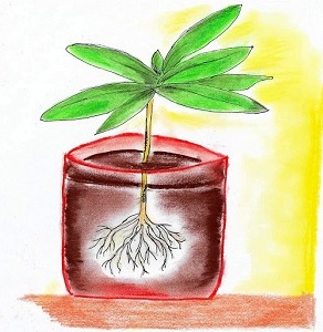 5. Tak przygotowaną sadzonkę sadzimy do niewielkiej doniczki z odpowiednio przygotowanym podłożem na taką głębokość, by była w nim dobrze osadzona. Najlepszy podłożem będzie tu