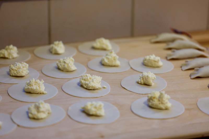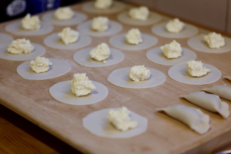 Ostatnio często trafiają na nasz stół pierogi z ricottą (pozostałość po produkcji eMowych serów) i szpinakiem.