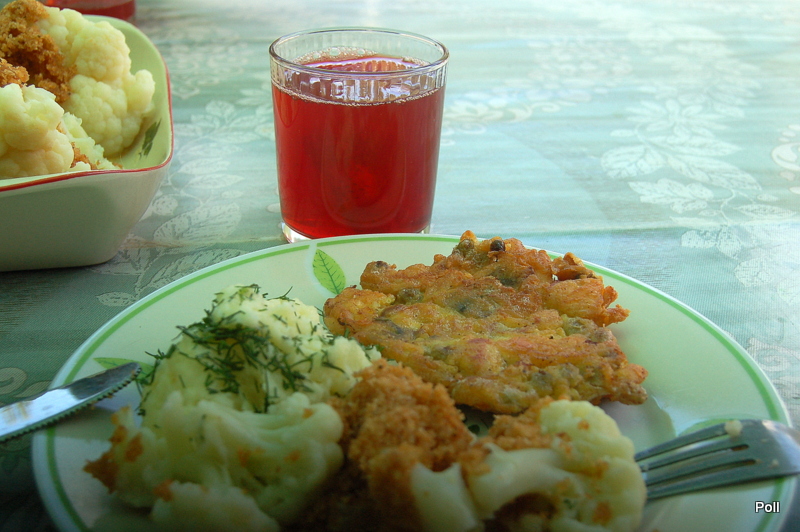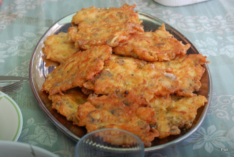 Drugie danie na szybko to tortilla - znajoma hiszpańska zakonnica mnie nauczyła. Na jakimś filmie H. Ford robił podobne danie i nazywał to fritata. Jak zwał tak zwał. Potrzebujemy pyry ugotowane w mundurkach. Najlepiej dzień wcześniej ugotować podwójną porcję - część wykorzystać do pyrów z gziką, resztę następnego dnia obrać ze skórki, pokroić w talarki i podsmażyć na tłuszczu na złoto razem z pokrojoną cienko cebulą (wcześniej można ja na chwilę zalać wrzątkiem - mniej wzdyma) dodać suszone pomidory, paprykę pokrojona w kawałki, gotowana fasolkę szparagową, co tam komu w lodówce zalega i całość zalać roztrzepanymi jajami doprawionymi wg uznania- 2-3 szt.