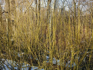 jesienno-zimowe pędów, najczęściej na kolor ciemnoczerwony. Przypomina przez to z wyglądu derenia białego, jednak rozrasta się i rozmnaża znacznie szybciej,