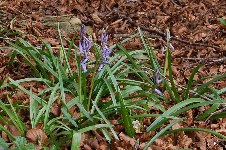 Kwiaty: do 20 słodko pachnących kwiatów (szczerze mówiąc nigdy nie wąchałam) na łodydze kwiatowej. Kwiaty są w kształcie dzwonu i mogą być niebieskie, białe lub rzadko różowe. Każdy kwiat ma 6 płatków z zakrzywionymi (wywróconymi) końcówkami. Pylniki mają biało-kremowy pyłek.