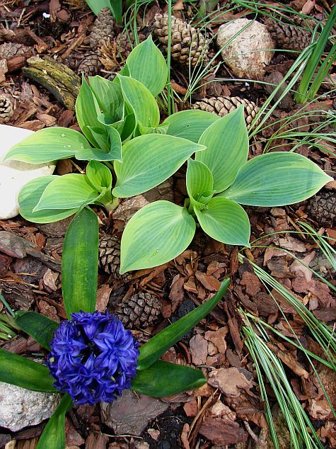 W tym roku kwitnienie tego Hiacynta może nie jest wybitnie obfite, ale wciąż zachowuje pełne kwiaty (w przeciwieństwie do białego za nim) i nawet rozmnożył się, w tym sezonie ma drugi mniejszy kwitnący pęd. Zaczynam się zastanawiać, czy 'Royal Navy' i 'Crystal Palace' to na pewno to samo? think: