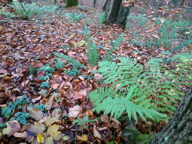 inny egzemplarz na paprociowym stoku - dobrze widać nieco sierpowate frondy
