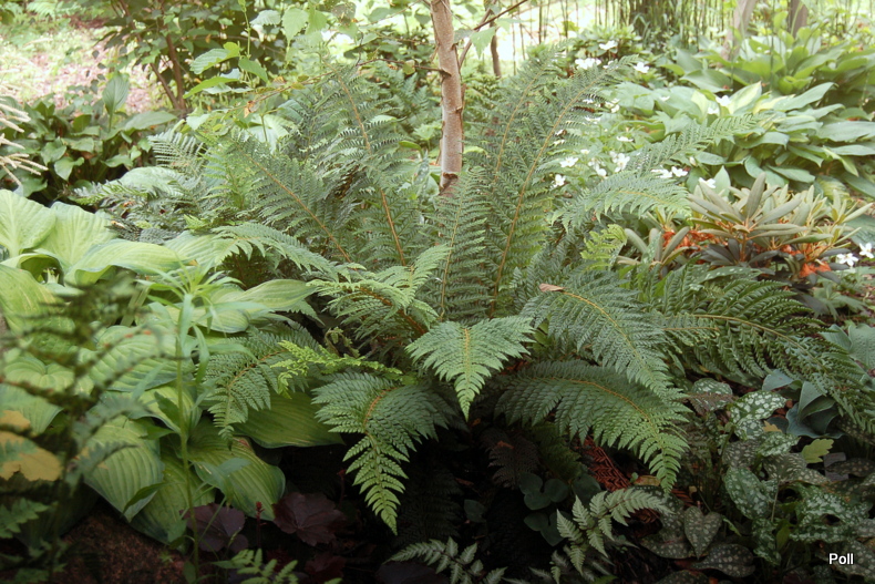 Piękna, mocna paproć dla wielbicieli tego co duże i ciemne. ;) Na stoku paprociowym rośnie w glebie o odczynie zasadowym, natomiast w innych miejscach, w kwaśnej, rodzimej ziemi. Umie się dostosować, bo nie widzę różnicy w wielkości i tempie rozwoju.