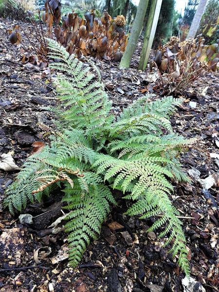 Paprotnik kolczysty,zeszłoroczne nasadzenie.Nie jest jeszcze pokaźny, ale ładnie się zapowiada.