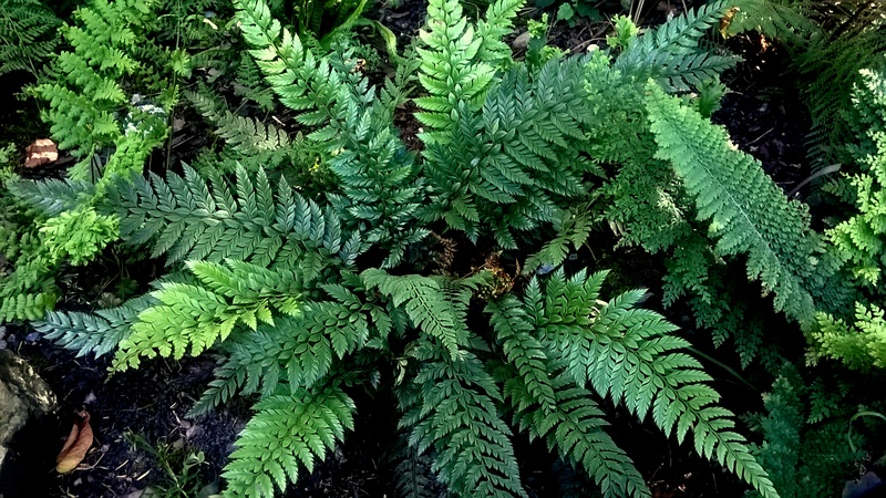 U mnie bardzo się różnią. Gatunek Polystichum neolobatum ma bardziej proste frondy, zaś Shiny Holly, sierpowate, mocno lśniące i ciemniejsze.