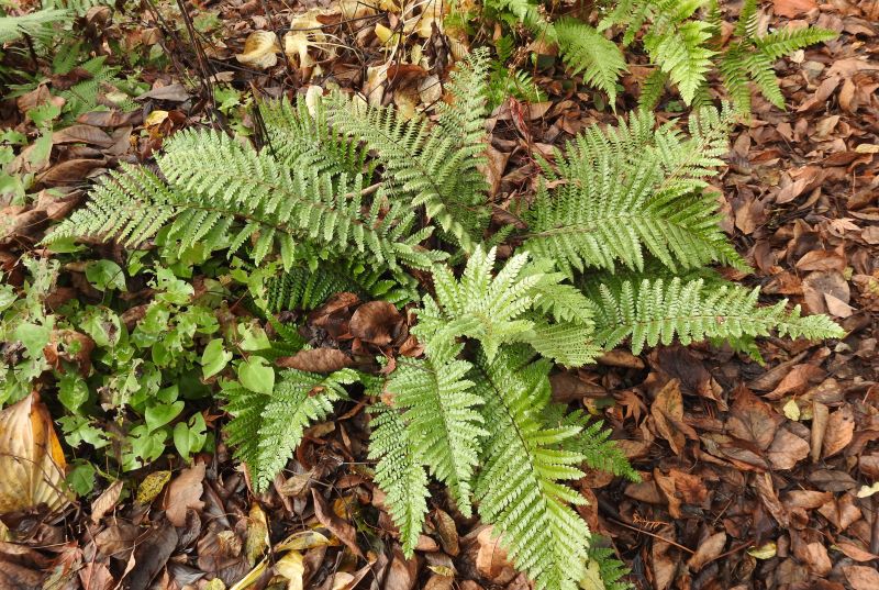 Paprotnik wielołuskowy jesienną porą - tego egzemplarza chyba jeszcze nie pokazywałam - rośnie od ok. 5-6 lat na stanowisku półcienistym pod miłorzębem. Słońce dociera do niego po południu. W tym roku mocno się rozrósł.