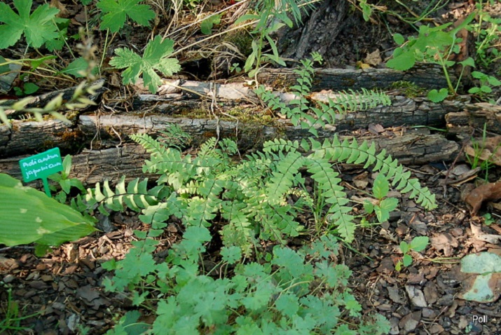 Adiantum aleuticum (palczaste frondy), inni zaś twierdzą, że jest raczej
