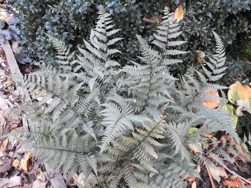Athyrium niponicum pictum . Dlaczego piszę 'oficjalna'? Paproć ta została odkryta ponad 20 lat temu przez entuzjastkę paproci, Nancy Swell. Pośród partii roślin pozyskanych z wysiewu