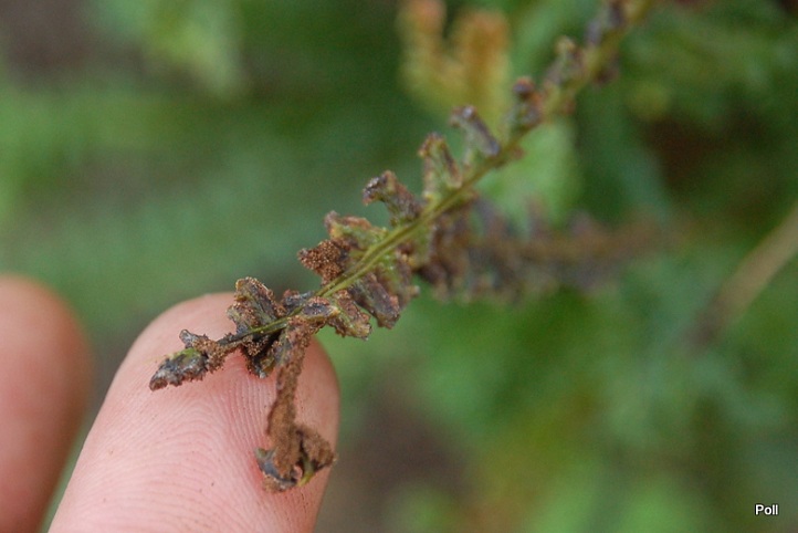 Rozwijające się, 'szczuplejsze' i bardziej kolorowe sporofile na tle ciemniejszych, zielonych i błyszczących trotofili (zdjęcie z początku czerwca)