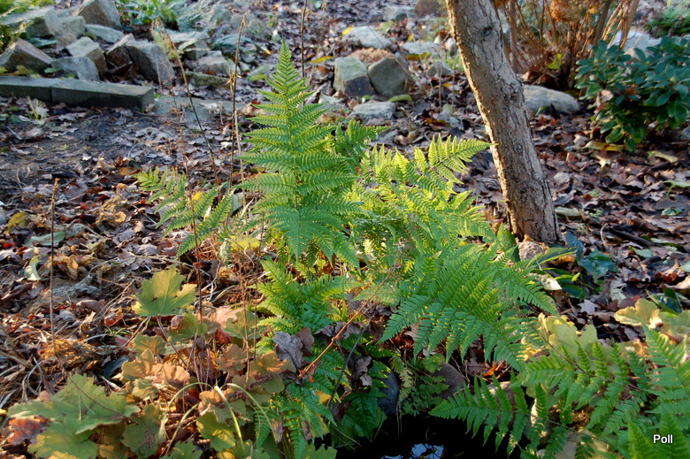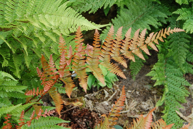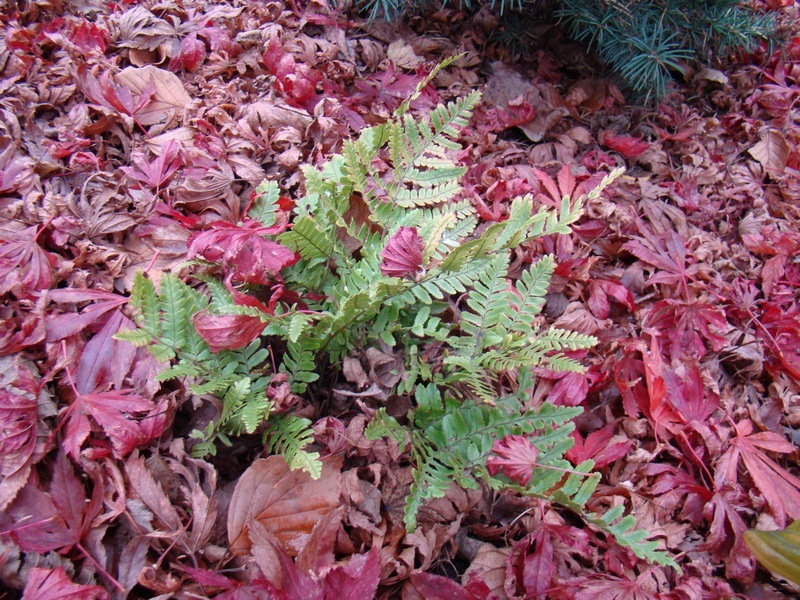 Wydaje mi się, że nie powinna być sadzona w bardzo głębokim cieniu, bo wtedy nie wybarwia się tak jaskrawo. Mam dwa egzemplarze nerecznicy czerwonozawijkowej pod dębem, gdzie promienie słoneczne niemal nie dochodzą i są one bardziej bardziej stonowane w kolorach. Młode przyrosty są oczywiście rude, ale liście bardzo szybko tracą ten kolor i zielenieją