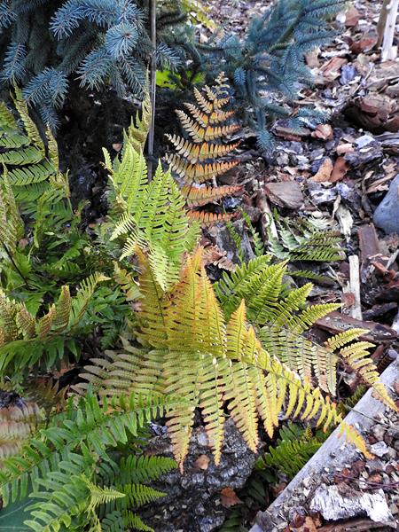 Nerecznice czerwonozawijkowe zimują u mnie w tym roku bez przykrycia i powodują, że ogród jest zielony i o tej ponurej porze roku