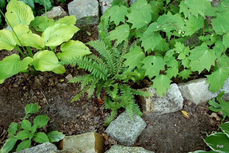 Polystichum setiferum 'Wakeleyanum' wiosną i w sezonie