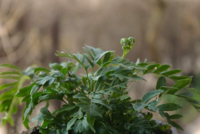 niemal każdy liść (bo jednak nie wszystkie) jest co najmniej raz rozwidlony i to nie na na końcu (czubku), a sporo poniżej. Czasem podział ten jest nawet trzykrotny ., stąd jej nazwa 'ramosum', co w języku łacińskim oznacza 'rozwidlony'.