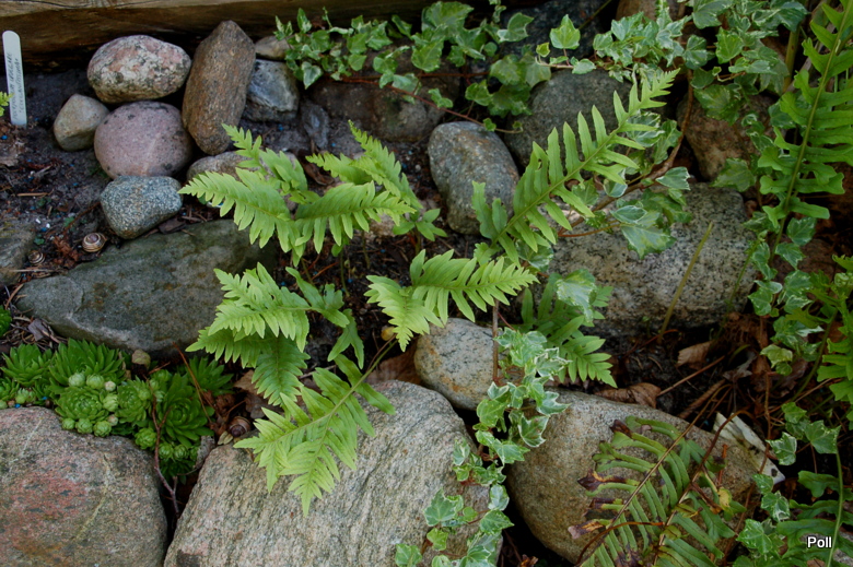 Paprotka pospolita 'Ramosum Hillman' , na pierwszy rzut oka, nie różni się od gatunku . Ma takie same, zimozielone, nastroszone w górę frondy , tworzy podobnej ,