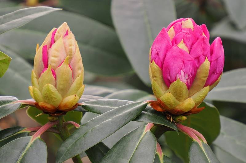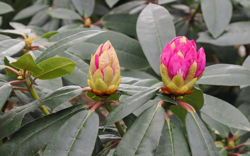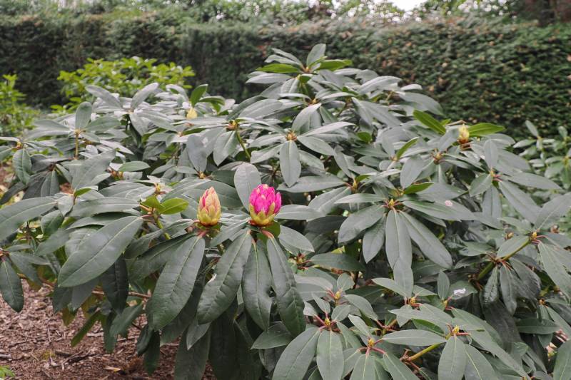 Selekcjoner: Holger Hachmann, Niemcy (wprowadzenie do handlu: 2009) Pokrój: zwarty Siła wzrostu: roślina wolnorosnąca... po 10 latach dorasta do około 0,60 m wysokości i osiąga około 0,80 m szerokości Liście: ciemnozielone, lekko błyszczące... eliptyczne... o długości do 15 cm przy szerokości 6 cm Kwiaty: w pąku purpurowo różowe, po otwarciu jasnoróżowe z wyraźnie zaznaczonym, jeżynowym rysunkiem na górnym płatku i w gardzieli... lejkowate... duże, średnica pojedynczego kwiatu do 8 cm... zebrane po około 16 sztuk w gęste, kuliste kwiatostany Termin kwitnienia: przełom kwietnia i maja Mrozoodporność: do -22 °C (Hachmann)