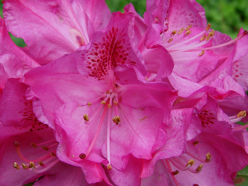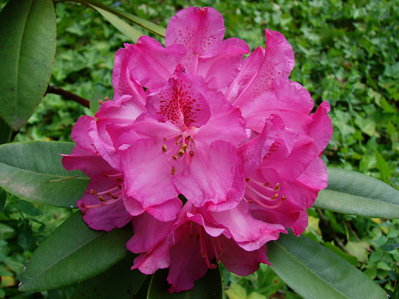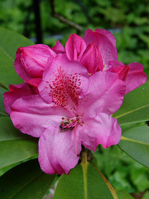 Selekcjoner: Hans Hachmann, Niemcy (wprowadzenie do handlu: 1975) Pokrój: szeroko wyprostowany, zwarty Siła wzrostu: szybka... po 12 latach dorasta do około 1,40 m wysokości i około 1,80 m szerokości Liście: eliptyczne, ciemnozielone Kwiaty: różowe, jaśniejące ku środkowi z wyraźnymi ciemnoczerwonymi cętkami na górnym płatku... średnica pojedynczego kwiatu od 5,5 do 7,5 cm... zebrane po 9-19 sztuk w zwarte, kuliste kwiatostany Termin kwitnienia: przełom maja i czerwca Mrozoodporność: do -25 °C (Hachmann)
