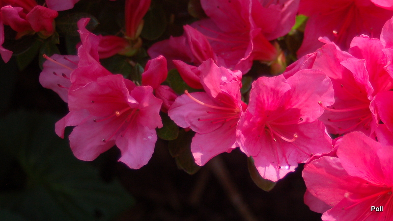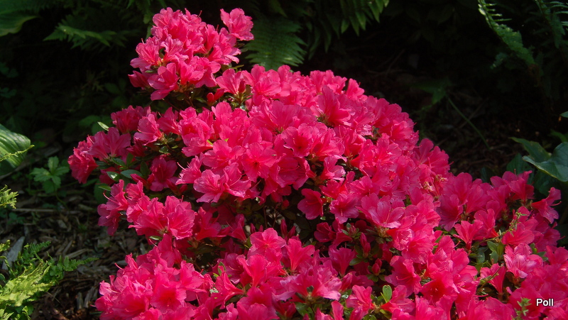 Po pięciu latach od ostatniego wpisu mogę zaraportować, że Drapa nie urosła w gorę, ale wszerz, owszem. Małe roczne przyrosty powodują, że można zaliczyć tę azalię do najwolniej przyrastających, choć ma świetne stanowisko i dostatek wody. Jak widać, kwitnie obficie i dość jaskrawo, więc mimo mikrych rozmiarów dobrze ją widać z daleka: