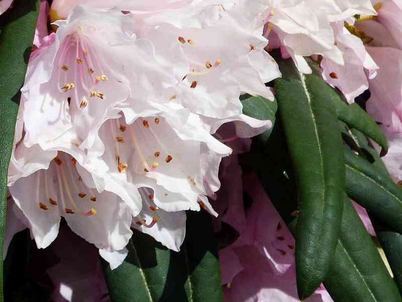 Liście: ciemnozielone i lekko błyszczące z wierzchu, od spodu z gęstą, filcowaną, kremową wyściółką... wąsko lancetowate ze spiczastym wierzchołkiem, lekko wypukłe... o długości do 15 cm przy szerokości do 3 cm... młode pokryte srebrzystym kutnerem