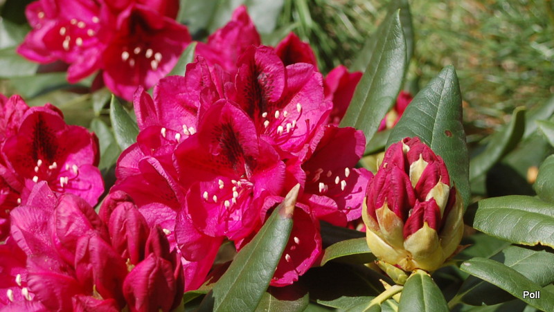 Zakwitł rododendron 'Sigismund Rucker', który nieźle daje po oczach