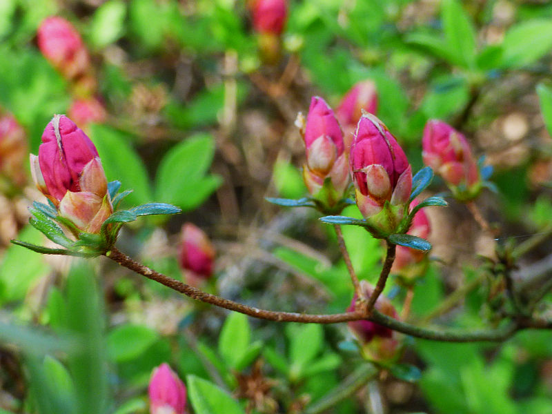 Kwiaty: w pąku intensywnie różowe, po rozwinięciu ciemnoróżowe z brązowymi cętkami na górnym płatku... szeroko otwarte... średnica pojedynczego kwiatu od 3,5 do 4 cm... zebrane po 3-5 sztuk w płaskokuliste kwiatostany