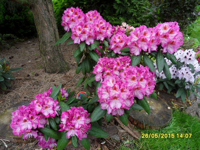 Różanecznik Kazimierz Odnowiciel, w tym sezonie wiosennym chorował (grzyb ?) widać ubytki liści na krzewie, został ,,przykoksowany'' Magiczną Siłą i zdecydowanie wygląda lepiej, krzew obecnie ma około 1m. wysokości, jakieś 1.40m średnicy, rośnie w cieniu sosny.