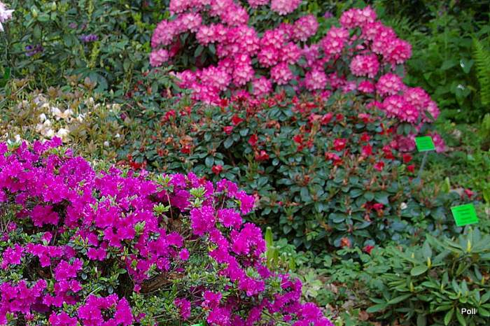 Różanecznik 'Anuschka' to odmiana słynąca z obfitego i niezawodnego kwitnienia. Tak prezentował się w pełni kwitnienia w Arboretum Wojsławice 20 maja