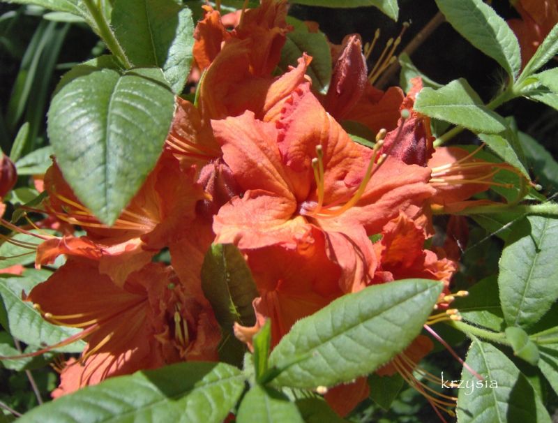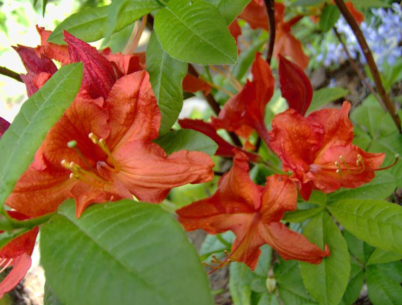 Kwiaty: w pąku czerwone, później ciemnopomarańczowoczerwone na zewnątrz, jaśniejsze wewnątrz z pomarańczowoczerwoną plamką na górnym płatku... lejkowate... średnica pojedynczego kwiatu od 4,5 do 5,5 cm... zebrane po 10-12 sztuk w wierzchołkowe kwiatostany