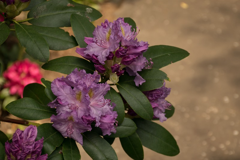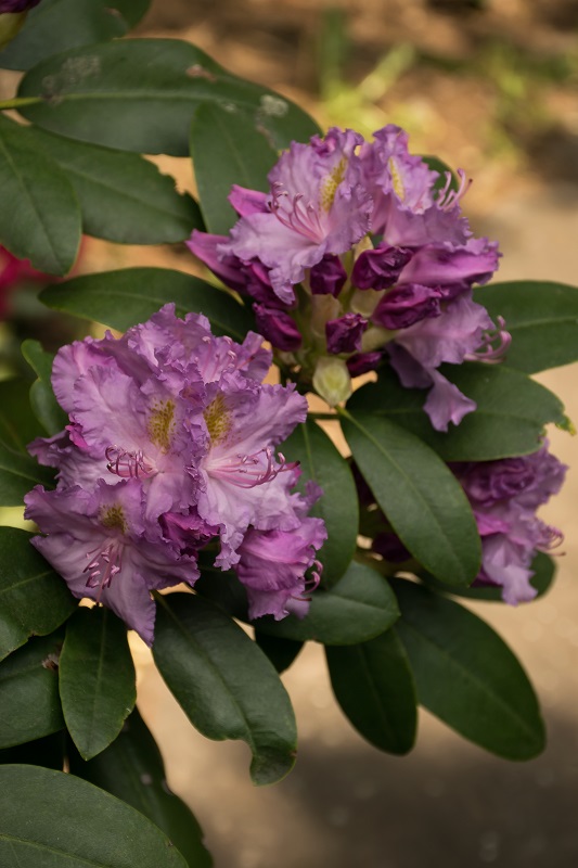 Selekcjoner: Anthony Waterer, Wielka Brytania/ przed 1850 Pokrój: szeroki, wyprostowany Siła wzrostu: duża... po 10 latach dorasta do około 2 m wysokości i takiej samej szerokości Liście: ciemnozielone, błyszczące... eliptyczne... o długości do 11 cm Kwiaty: jasnoliliowe z wyraźnymi pomarańczowobrązowymi cętkami na górnym płatku... brzegi płatków mocno fryzowane... lejkowate... średnica pojedynczego kwiatu od 5 do 6,5 cm... zebrane po 10-16 sztuk w gęste, wierzchołkowe kwiatostany Termin kwitnienia: przełom maja i czerwca Mrozoodporność: do -26 °C (ARS)/ bardzo dobra (Schmalscheidt)
