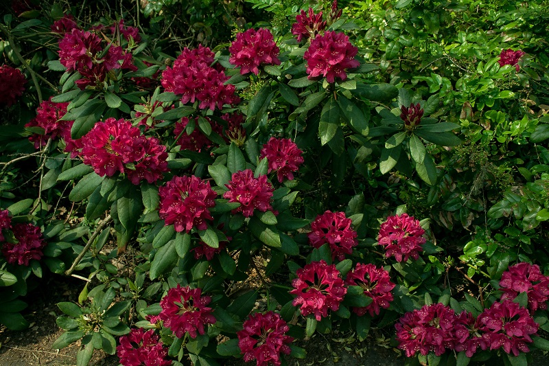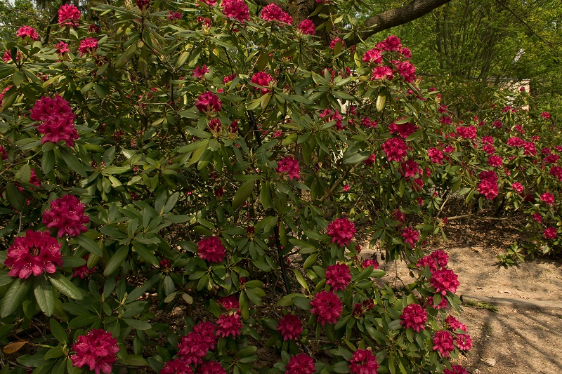 Różanecznik 'America' jest odmianą dość licznie reprezentowaną w Powsinie.