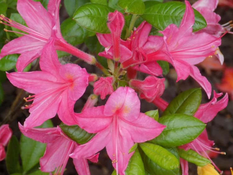 Selekcjoner: NN (wprowadzenie do handlu: Stacja Doświadczalna Boskoop Holandia przed 1971) Pokrój: wyprostowany Siła wzrostu: duża... po 10 latach dorasta do około 1,50 m wysokości i 1 m szerokości Liście: sezonowe, jasnozielone... eliptyczne... o długości od 6 do 8 cm... jesienią przebarwiają się na żółto czerwono Kwiaty: w pąku ciemnoróżowe... po otwarciu różowe z niewielką pomarańczowo żółtą plamką na górnym płatku... średnica pojedynczego kwiatu około 7 cm... zebrane po 7-9 sztuk w wierzchołkowe kwiatostany Termin kwitnienia: druga połowa maja Zapach: intensywny Mrozoodporność: do -32 °C (ARS)/ bardzo dobra (Schmalscheidt) Wyróżnienie: AGM: RHS 2012