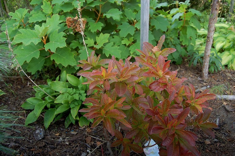 Liście: sezonowe, matowozielone... jajowate... o długości do 15 cm