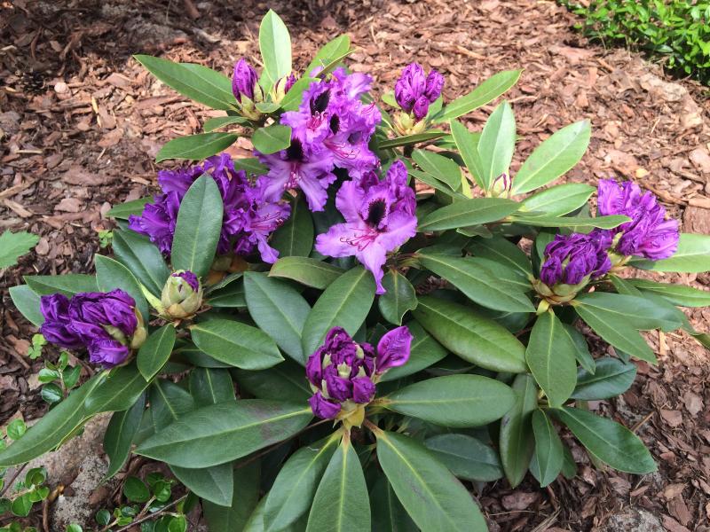 " Rododendron dorasta po 10 latach do ok 120-150cm, mrozoodporność do ok -22 °C, kwitnie w połowie maja".