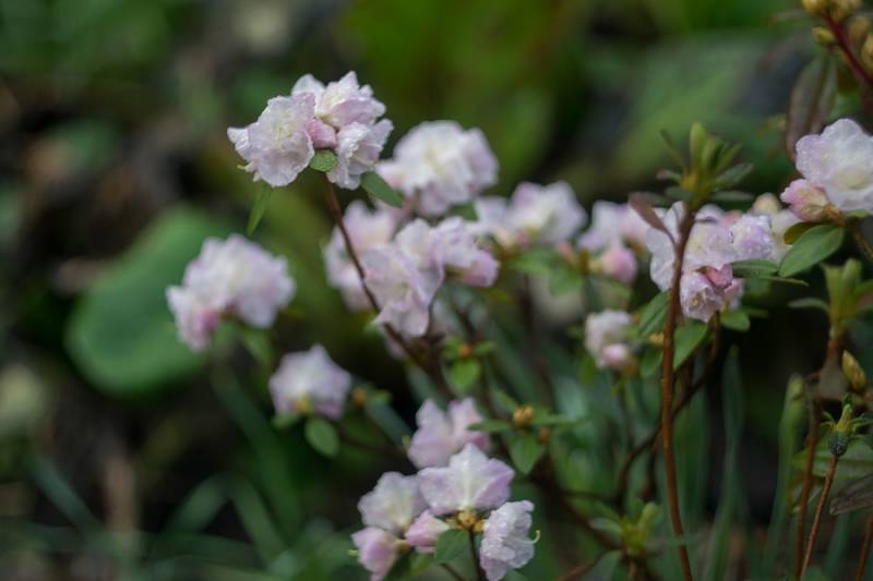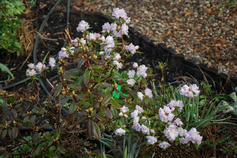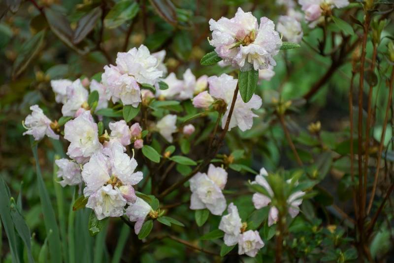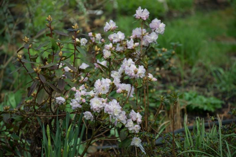 Rodzice: ('Rh minus f. album x Rh 'Cornell Pink') x (Rh dauricum f. album x Rh dauricum )
