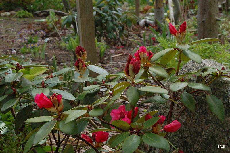 dwóch egzemplarzy różanecznika 'Wilgen's Surprise'. Kupiłam je głownie ze względu na pochodzenie - jak Monika napisała, są krzyżówką różanecznika